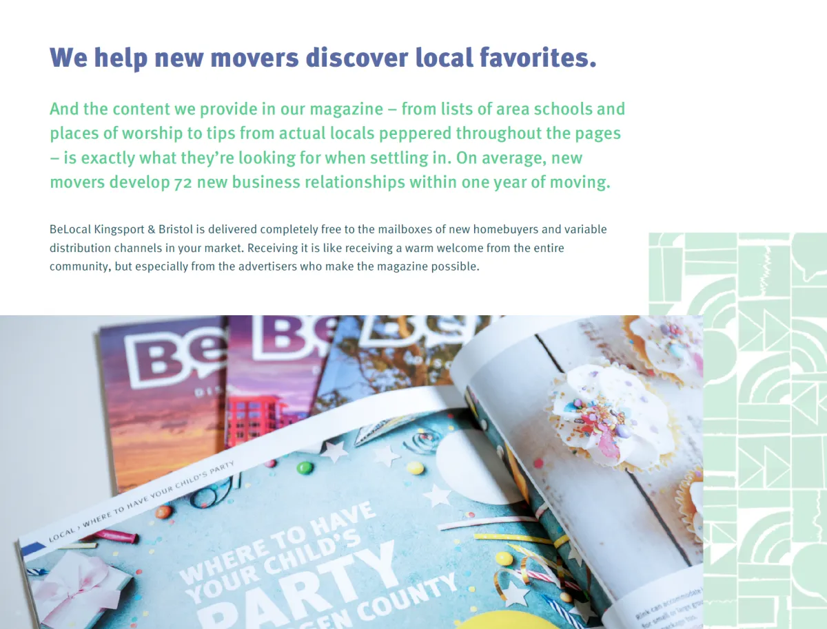 The Belocal Magazine is mailed to new homeowners every month to help these new families get established in their new community and help them discover local favorites and preferred local businesses. We also introduce them to our social pages to continue building upon their local connections.